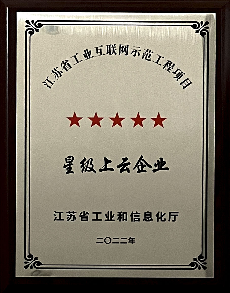江苏省五星上云企业证书