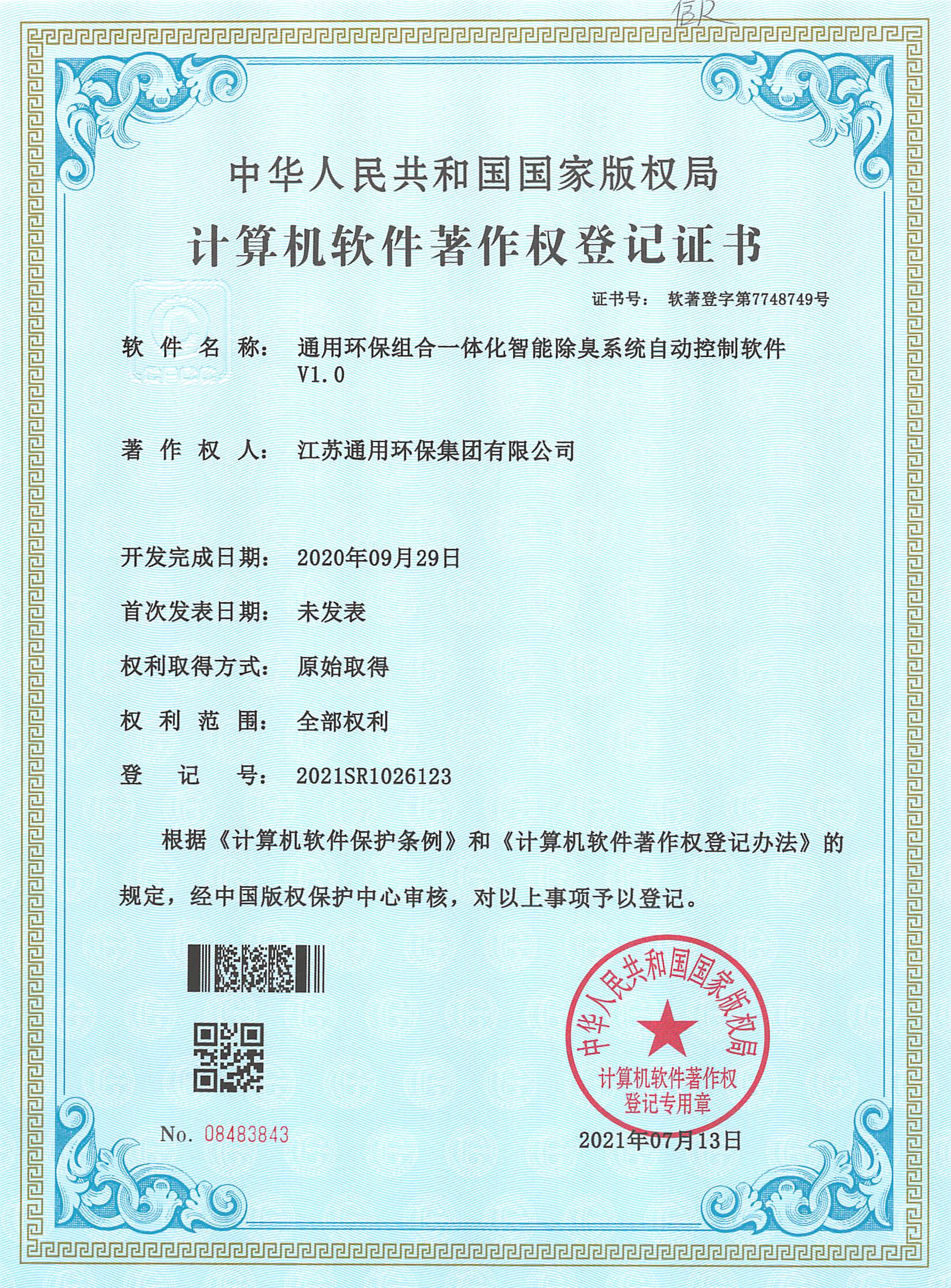 计算机软件著作权登记证书