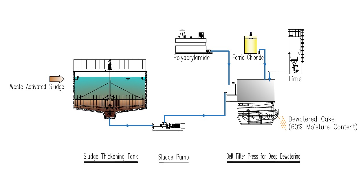 Deep dewatering is a pre-treatment stage for sludge drying, aiming to further reduce the water content of the sludge from approximately 80% after conventional mechanical dewatering (such as belt filter pressing and centrifugal dewatering) to below 60%.