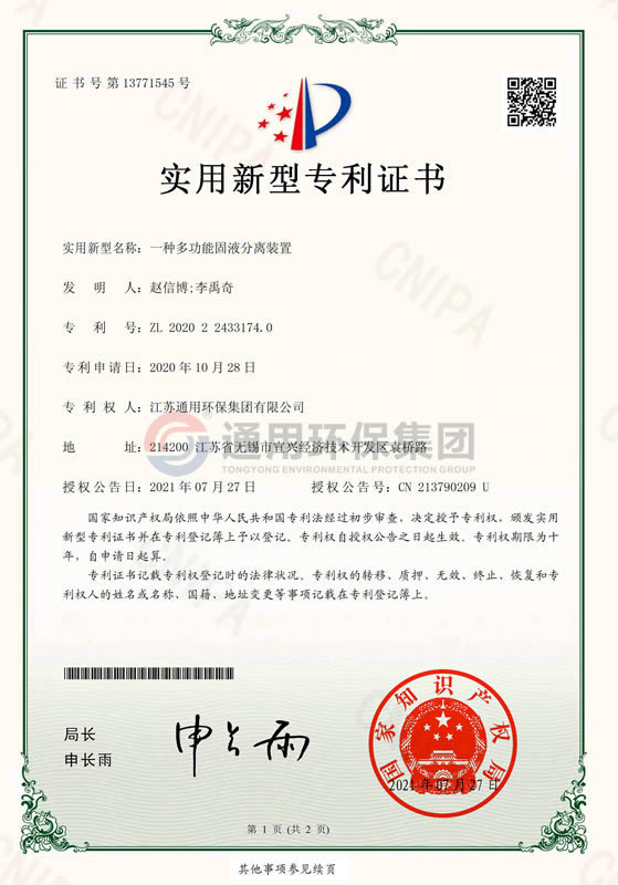一种多功能固液分离装置实用新型专利