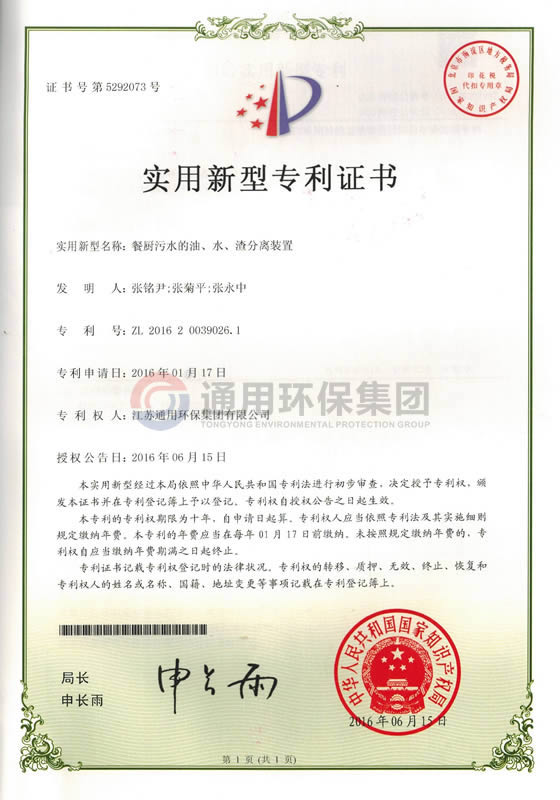 餐厨污水的油、水、渣分离装置实用新型专利