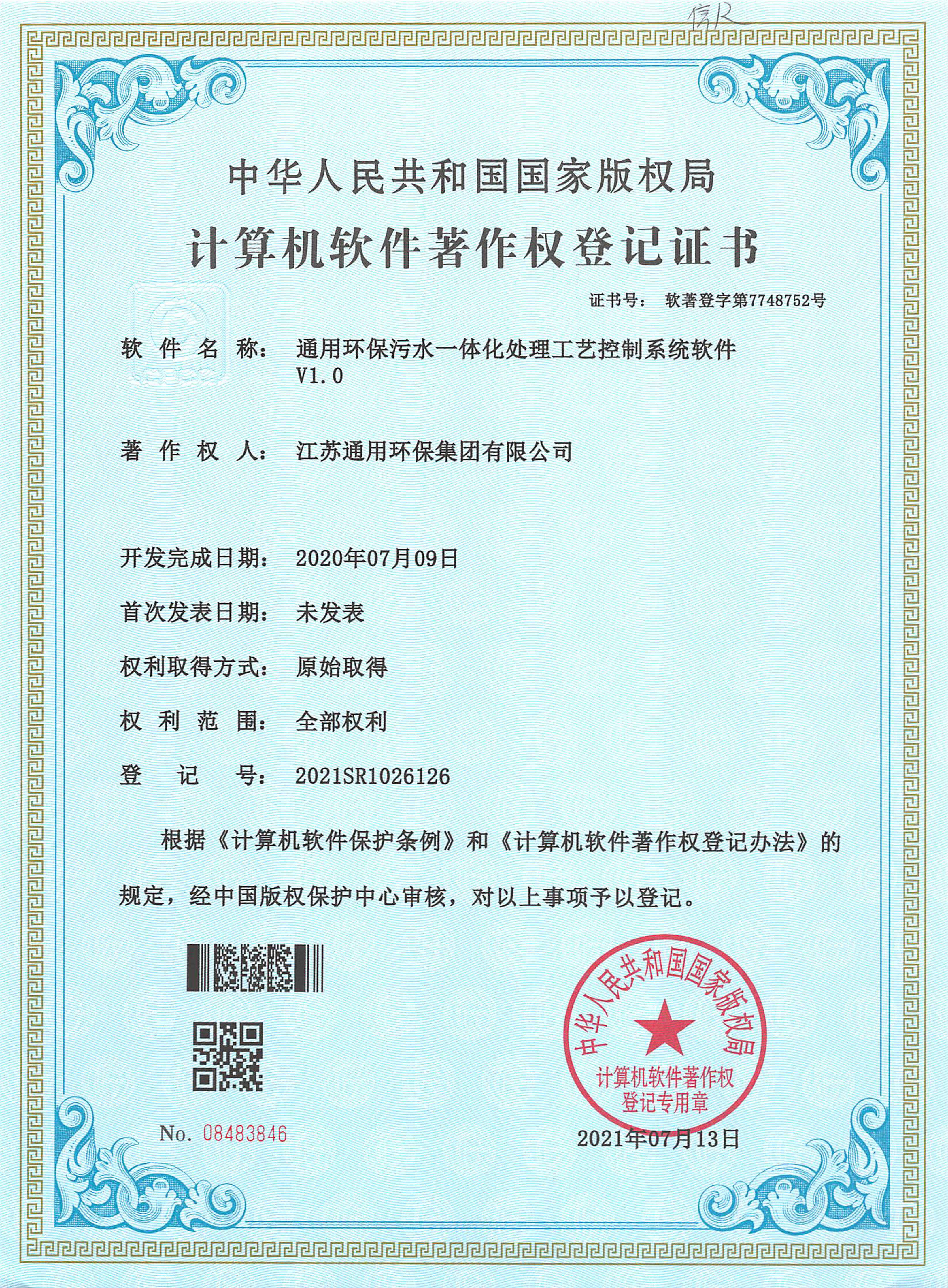 计算机软件著作权登记证书