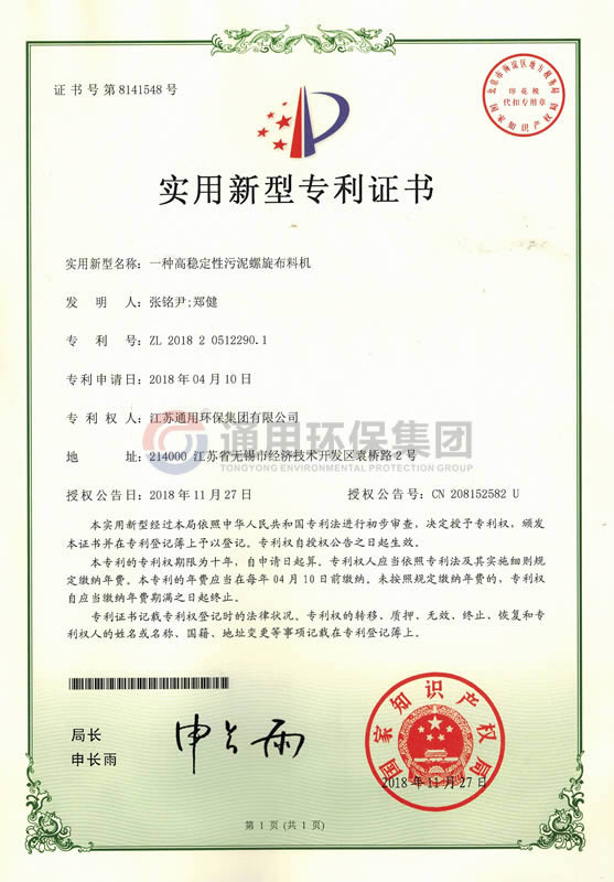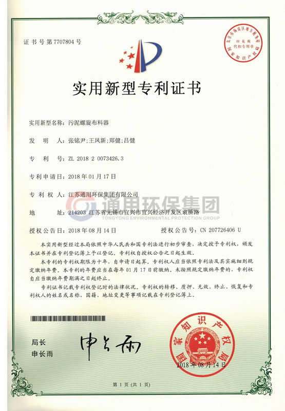 污泥螺旋布料器实用新型专利